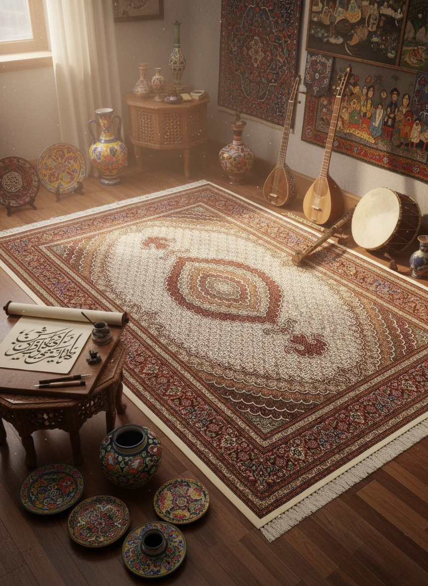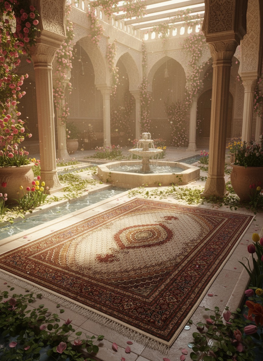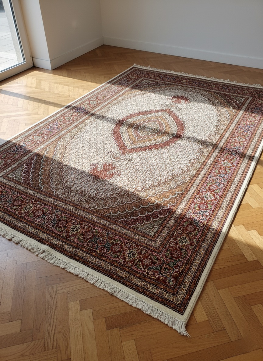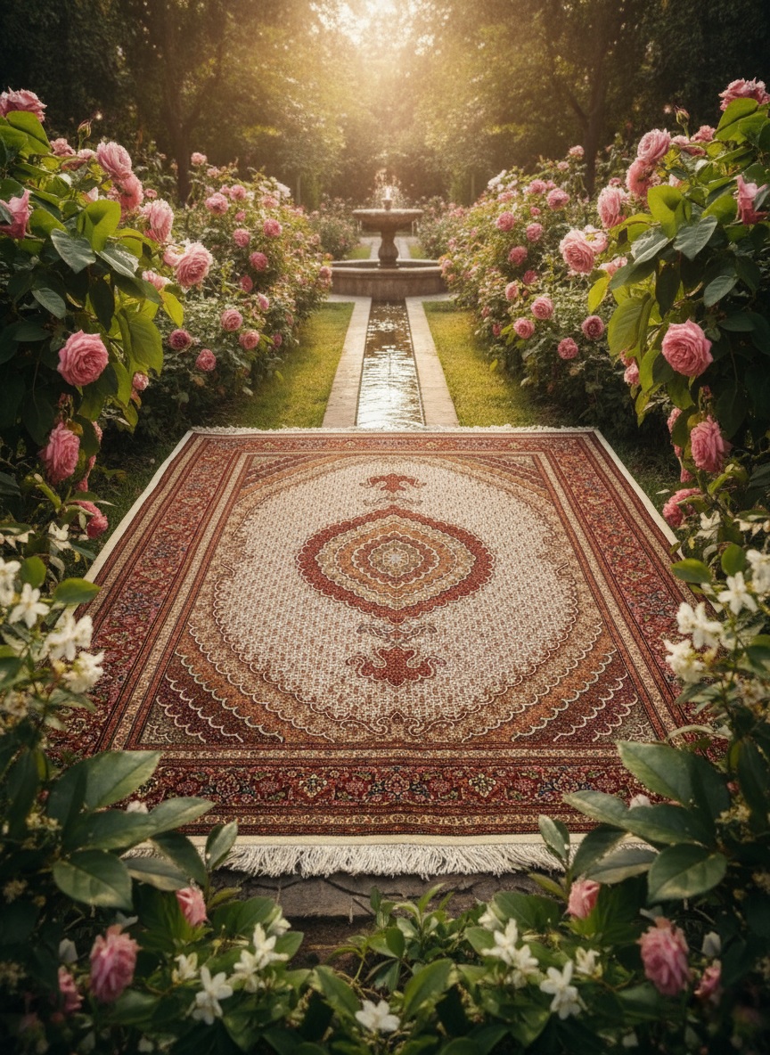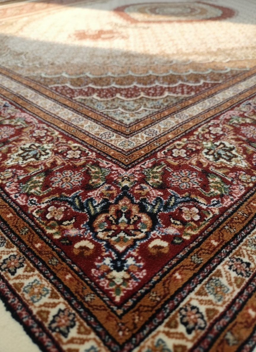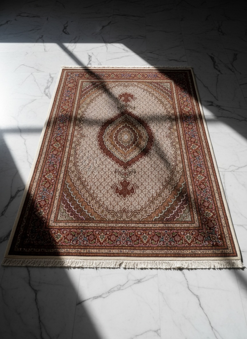 • این تقارن باعث میشود چشم بیننده هیچ نقطهای از فرش را سنگینتر یا خالیتر احساس نکند.
